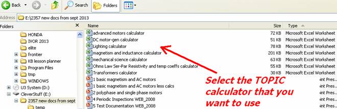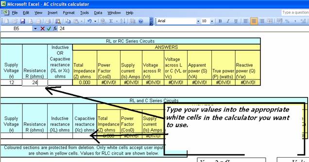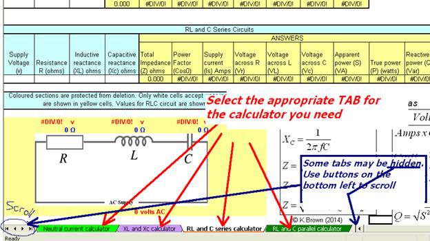 ELECTRICAL CALCULATORS (.xls files) © K.Brown 2014