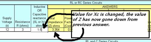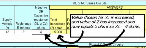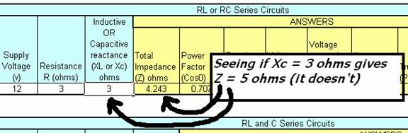 into Xc. Look at what answer you get for Z to see if it is 5 ohms (very unlikely on the first attempt). In the example
